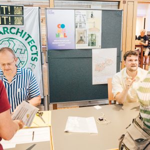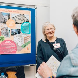 Anschließend konnten die Besucherinnen und Besucher an 30 Infoständen mit unterschiedlichen Wohninitiativen, realisierten Projekten und Organisationen rund ums gemeinschaftliche Wohnen in den Austausch kommen. Für Neuinteressierte gab es zwei Workshops zur Vernetzung.